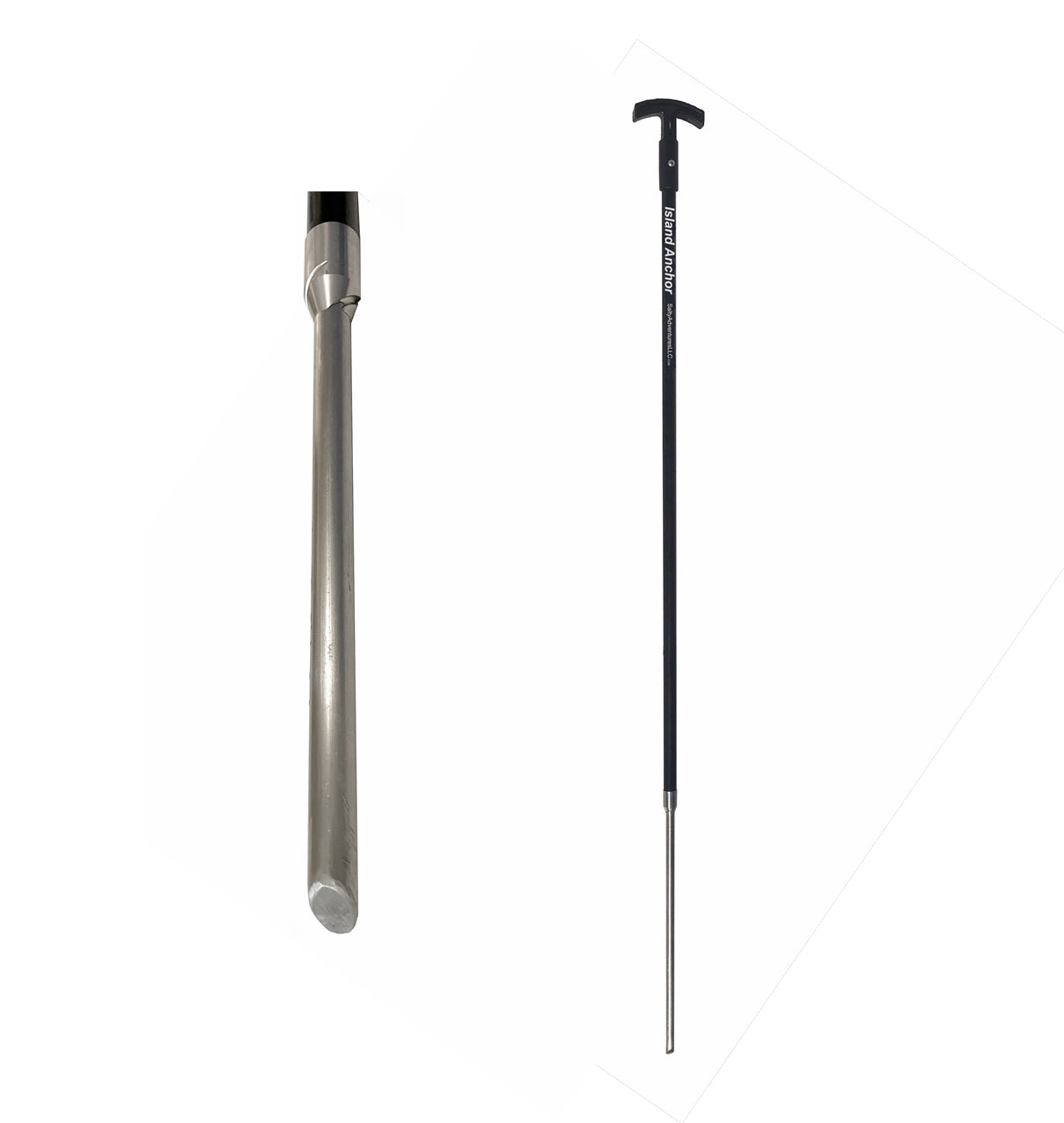 The sturdy 3/4" x 4' Island Anchor Pole is the strongest anchor pin on the market. The Beach Spike easily penetrates the hard packed sand found on the beach and in the shallows. Tip is 12" long and leads in the grooved helix which allows you to easily screw into hard packed sand or clay. Tip is made from 316 Stainless Steel. No Rust! No Stain! Pole is made from solid fiberglass, not hollow like the cheaper brands, will provide years of trouble-free service.. The rugged T-handle allows easy driving, has extra thick ribs, and is thru-bolted for toughness. Proudly Made in the USA by Salty Adventures.