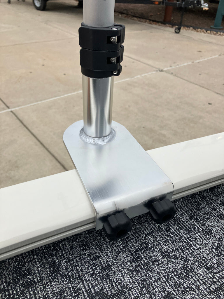 Pole Outside Dia: 1.38", Length 60" and extends 51" Below Gunwale. Plate Thickness 3/8", Both Made from Anodized Aluminum, Includes 316SS Mounting Hardware, Ships in Two Boxes
