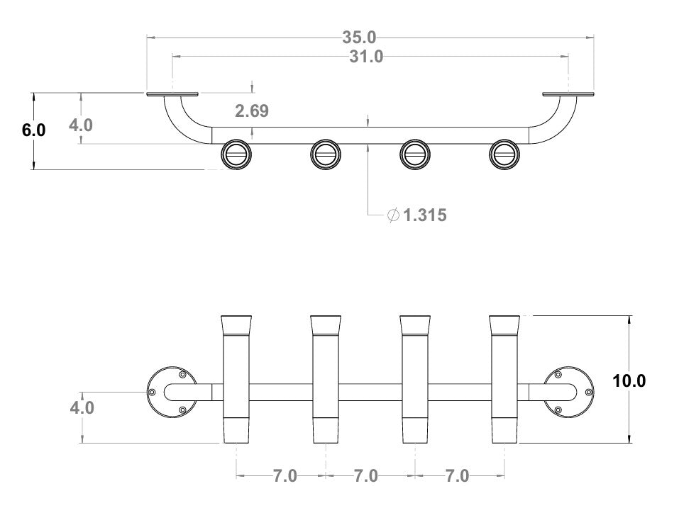 - Rod holders ID 1-5/8″ Length 10" Clear Anodized Aluminum